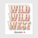 Style rétro grunge "Wild Wild West" design texte avec des lettres rayées dans les couleurs jaune, rouge et beige