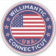Willimantic Connecticut, ville de Willimantic autocollant avec drapeau des États-Unis, forme arrondie