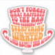 Willy Wonka et l'usine de chocolat | Une citation écrite sous la forme du casquette rouge de Willy Wonka : "N'oubliez pas ce qui est arrivé à l'homme qui soudain a tout ce qu'il a toujours voulu, il a vécu heureux toujours après".