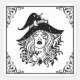 Autocollant femme sorcière noir et blanc