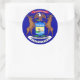 Crafted with attention to detail, this sticker proudly displays the flag of Michigan, featuring a dark blue field with the state coat of arms in the centre. The coat of arms includes an elk and a moose supporting a shield that depicts a lake with a sun rising over it, symbolizing Michigan's natural beauty and resources.