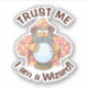 Vieux sorcier avec cape rose regardant la boule de cristal magique. Texte personnalisé