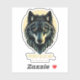 Sticker d'un magnifique visage de loup tribal en bleu beige avec le mot Guerrier. La peur obscurcit l'esprit comme option de texte personnalisable
