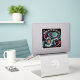 La colle n'est pas très collante. Le point positif est que le collant s'enlève facilement. Le point négatif est que les côtés "frisent" un peu, je l'ai collé sur mon ordinateur et quand je le met et l'enlève de mon sac, ça abime un peu les rebords. Mais ça tient quand même depuis quelques semaines sans problème, c'est juste les côtés qui sont un peu abimés. Je suis très satisfaite de la qualité de l'impression. Les couleurs sont fantastiques et tiennent bien le coup.