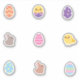 Des autocollants sur le thème de Pâques, y compris des lapins, des oeufs de Pâques et des poussins.