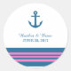 Stickers de mariage Ancre nautique élégant et classique avec une simple ancre de bateau et un ensemble de rayures en bleu marine foncé et rose. Ces autocollants de mariage sur le thème de la plage nautique peuvent être facilement customisés avec vos détails de mariage. Pour plus d'options de personnalisation, cliquez sur le bouton Customiser.