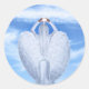 Beau Ange avec Ailes de plumes et forme de main halo regardant dans le ciel céleste.