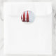 Arbres rouges de Noël sur un arrière - plan enneigé. Des autocollants pour les sacs cadeaux de Noël, les scellés d'enveloppe, les décorations de cadeaux et plus encore. Ajoutez du texte à cette conception si vous le souhaitez.