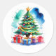 Cet autocollant de Noël festif présente une charmante aquarelle d'un sapin de Noël joliment décoré entouré de cadeaux colorés. La technique de l'aquarelle apporte une touche douce et capricieuse à la scène, créant une atmosphère chaleureuse et accueillante.