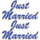 2 x Stickers auto et bagage XL JUSTE MARIÉ - Police #3 Brush Script - une police en caractères italiques gras - MIDNIGHT BLUE #011993 COULEUR TEXTE. 14" x 14" XL Stickers Kiss Cut Extra Large - avec GLOSSY TRANSPARENT 0.125" BORDER & FIDER LL. Deux autocollants "Just Married" Kiss Cut en un - un pour la fenêtre arrière du véhicule de fuite et un pour ailleurs - valise de la mariée peut-être ; o) Imprimé avec des encres de solvants anti-dégivrage, imperméables à l'eau et résistantes aux rayures. Technologie brevetée de découpe laser par baiser. Facilement amovible grâce à un adhésif à faible adhérence.