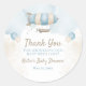 Ces adorables autocollants en Merci de Baby shower présentent des nuages bleus avec une montgolfière bleu bébé. Utilisez cet autocollant personnalisé pour envoyer vos Mercis après votre Baby shower. Ils peuvent être utilisés comme scellés d'enveloppe ou peuvent être utilisés sur des sacs de traitement donnés au baby shower lui-même.