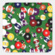 In the 19th century a poolroom was a horse race betting parlour. Pool tables were installed so the bettors could pass time between horse races. Billards, or pool, is the descendant of a game similar to croquet that was played in 15th-century Europe. Though we don't know for sure, it is strongly suspected that billiards came to America with Dutch and English settlers. By the 1700's, skilled cabinet makers were crafting beautiful tables, though the equipment was, otherwise, quite primitive. Fifteen-ball pool came on the scene in the late 1800's and grew in popularity through the 1940's. Billiards was revived in 1961 with the release of the movie THE HUSTLER. It enjoyed another surge in the mid 1980's with the release of the movie sequel, COLOR OF MONEY. Since that time, there has been an evolution of the environs in which we find pool tables -- they're in restaurants and night clubs and sports bars, allowing pool to find a modern audience and new generations of enthusiasts. This marvellous design is layers of billiard balls in varying sizes for greater depth. They are scattered all over a "green felt" backdrop. These fabulous stickers are a great way to decorate packages, seal envelopes or do some scrapbooking for your favourite pool shark.