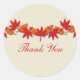 Feuilles d'automne simples et élégantes Stickers Merci frontière avec une rangée de feuilles de chute rustiques en rouge et orange. Ce design chic est parfait pour votre mariage d'automne ! Facile à customiser, il suffit d'ajouter les détails de votre mariage dans les champs de texte fournis. Pour trouver d'autres options de personnalisation, cliquez sur "Customiser".