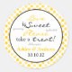 Des stickers de buffet à bonbons jaunes et noires, à points de polka, qui sont parfaits pour une douche mariage ou nuptiale. Vous pouvez personnaliser les noms et la date du mariage à l'aide de personnaliser. Vous pouvez également modifier n'importe quel autre texte dans la section personnaliser. Assurez-vous d'obtenir la taille que vous voulez avec ceux-ci, car il ya deux tailles disponibles.