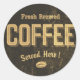 On ne peut pas battre du café fraîchement préparé et ce design est une façon d'exprimer cela. C'est un signe avec les mots café frais brassé servi ici. Il est écrit dans un fond agréable et mis contre un arrière - plan vert foncé qui est vraiment efficace. Ce café fraîchement moulé a l'air superbe sur ces autocollants. Parfait pour vous-même ou comme cadeau