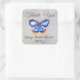 Beau papillon bleu aquarelle et un arrière - plan en toile, élégant Stickers Carré pour douche nuptiale