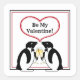 Ce design charmant comprend deux pingouins en dapper, avec du champagne. En haut, un coeur et les mots, "Sois ma Saint Valentin".