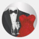 Élégant tuxedo, robe rouge et verres de champagne autocollant. Ce bel autocollant tuxedo rouge et noir est facilement customisé pour votre événement en choisissant simplement le bouton "Customisez-le !" pour commencer à ajouter votre texte, style de police, taille et couleur de police et libellé. Vous pouvez également laisser comme il est et il fonctionne bien comme un sceau d'enveloppe et une étiquette de faveur de la partie. Veuillez noter que tous les modèles de cartes et d'invitations que vous trouverez sur Zazzle sont des graphiques imprimés sans bijoux, arcs, surélevés, gaufrés, ou des pièces ou pièces ajoutées.