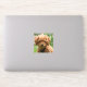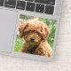 Un visage de chiot super spécial orne ces autocollants. Voici un caniche de jouet rouge vieux de 6 semaines. Il s'appelle Rudy.