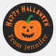 Balises-cadeaux Halloween avec une lanterne citrouille orange sur un arrière - plan noir. Le salut "Happy Halloween" et son origine peuvent être changés.