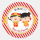 Autocollants chinois de Nouvel An avec garçon et fille mignonette.