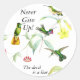 Magnifique art botanique vintage d'Oiseaux de colibris exotiques tropicaux et habitat Fleurs avec le dicton : N'abandonnez jamais ! Le diable est un menteur... est sur ces Stickers.