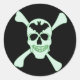 Crâne vert et os croisés avec une chauve-souris gravée dans le front.