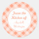 Une pêche éclatante en vichy motif décorent ces autocollants personnalisés de cuisine. Changez le nom pour personnaliser ces autocollants. Utilisez ces autocollants stylisés pour les cadeaux, la cuisson, etc....Le design est de l'art original.