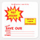 Cet autocollant carré d'alerte d'urgence pour animaux de compagnie a un texte jaune et rouge brillant qui dit : "Alerte pour animaux de compagnie - S'il vous plaît enregistrer nos chiens, chats, autres". Il y a beaucoup d'espace pour écrire dans les informations de votre animal de compagnie. Les autres caractéristiques de ce design sont le texte personnalisable et les images personnalisables qui en font un design idéal pour un bureau d'vétérinaire, une boutique pour animaux de compagnie ou un abri pour animaux. Vous pouvez supprimer le texte et l'image personnalisables si ces éléments ne sont pas nécessaires. Si vous avez besoin d'aide pour personnaliser ces autocollants, n'hésitez pas à contacter ce magasin et quelqu'un vous contactera dans les 2 jours ouvrables.