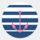 stickers d'ancre rose avec rayures bleues et blanches. Mignons scellants d'enveloppe maritime / étiquettes pour mariage nautique ou invitation à la douche bébé. Personnalisable avec les initiales de nom monogramme.