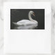 Cette feuille d'autocollants ronds présente une photo d'un beau cygne blanc. Le cygne est un cygne muet. Il a l'air très beau car il nage gracieusement le long d'une rivière calme.