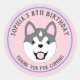 Ces autocollants de remerciement d'anniversaire illustrent un chiot sibérien blanc et gris avec les yeux bleus. Personnalisez ces Stickers Merci Anniversaire de enfant avec votre propre message et le nom de votre enfant. Le message par défaut est "8ème anniversaire de Sophia" et "Merci pour venir" et est en gris. Ces autocollants seraient une touche peu coûteuse mais unique pour une fête anniversaire de enfant. Ce serait très bien pour les enfants qui aiment les chiens ou une fête sur le thème du chien pour les enfants. Joignez ces autocollants pour vous remercier, les joindre à des cadeaux ou des faveurs de fête.
