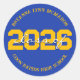 Stickers Cercle Gold & Blue Graduation. Faites-en un sceau d'enveloppe parfait ou un autocollant de faveur! Personnalisez avec Nom & École Arrière - plan jaune or