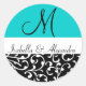 Stickers de mariage Aqua Blue Swirl Damask Monogra