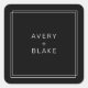 Cet autocollant mariage de la suite Avery est doté d'un arrière - plan noir foncé, d'un cadre double blanc fin et d'un type sans serif propre. Il crée un look moderne et poli, adapté aux lieux de la ville, aux galeries et aux mariages du soir. Personnalisez le étiquette avec les noms du couple.