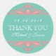 Vintages tourbillons et boucles fleuris ornement mariage faveur merci sticker. Design victorien élégant et classique. Customisez et personnalisez les mots pour mariage, douche nuptiale, fête de fiançailles, fête d'anniversaire, baby shower ou fête d'anniversaire. Ce sera un complément parfait à votre décoration d'événement et un cadeau de remerciement pour les invités.