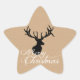 stickers de Noël avec un look naturel, simple, dispose d'un look de papier kraft tan arrière - plan avec buste de cerf en silhouette noire et texte cursif blanc qui lit Joyeux Noël!