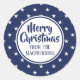 Sticker étiquettes cadeaux de vacances avec un arrière - plan bleu marine étoiles. Le salut "Joyeux Noël" et de qui il est peut être changé.