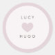 Scellez vos enveloppes mariages avec cet autocollant de coeur d'amour rose avec un design de bordure et les noms du couple heureux. Une partie de la collection Modern Romance.