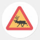 Attention aux cerfs qui traversent la route. Cette conception est un panneau routier de franchissement de cerfs vous avertissant. Ce cerf traversant la route de signalisation design est superbe sur ces autocollants. Parfait pour vous-même ou comme cadeau