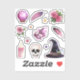 Les autocollants de sorcière scrapbook qui imite la collection magique casquette de sorcières, crâne, boule de cristal, cristal magique, bougie, plumes, roses de thé.