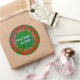 Un arrière - plan vert de forêt à thème de vacances avec un motif de pin bleu et vert créé à partir d'une gravure vintage. Ajoutez votre propre message personnel à cet autocollant !