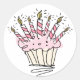 Petits stickers de cupcake pour enveloppes et boîtes. Dessin de gâteau mignon avec glaçage et bougies. Couleur arrière - plan personnalisée. Design amusant pour la maison ou la boulangerie.