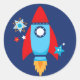 Stickers d'espace extra-atmosphérique à roquette bleue et rouge. Parfait pour Anniversaire Favoris Stickers Circle, pour décorer vos tasses en papier, toppers en cupcake et plus encore! Dans la marine, bleu, orange, jaune, vert et rouge. Roquette rouge et bleu.