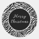 Cet autocollant rond est montré dans un imprimé zèbre animal avec un joyeux souhait de Noël. Petite taille affichée. Customisez cet objet ou achetez tel quel.