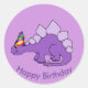 Les autocollants d'anniversaire sont illustrés d'un imprimé de dinosauer mignon. Customisez cet objet et ajoutez un nom ou achetez tel quel.