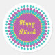 Stickers Diwali Joyeux Circulaire avec thème de couleur violet, jaune et turquoise. Ces autocollants peuvent être personnalisés avec un message personnel. Veuillez envoyer un message pour plus de requêtes.