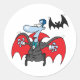 Cette conception est dracula et une chauve-souris. Dracula a son cap ouvert et il y a une chauve-souris qui vole autour. Cette conception de drula et de chauve-souris est très intéressante sur ce Stickers