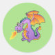 Sticker en forme ronde avec un joli tirage de dragon violet flambant. Customiser ou acheter tel quel.