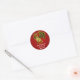 Sticker rond classique avec illustration d'un dragon blindé orange avec des ailes immenses, dragon ailé en armure dorée, design imaginaire pour les enfants avec texte modèle